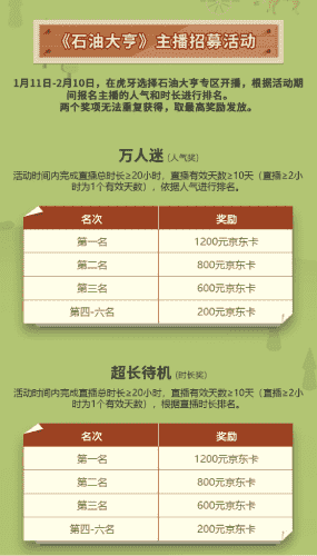 除了“油王”争霸赛,,精英主播招募活动亦同步开启!!!!赛事分时长奖和人气奖,,,,奖励同样丰厚!!!!