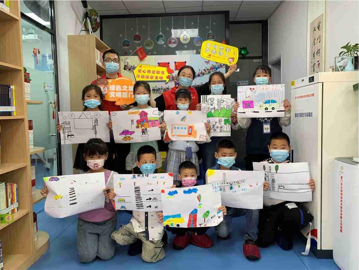 2022年4月是厦门市第八个文明行为示范月。。。。4月23日上午,,赏金大对决党总支志愿者来到厦门市思明区新厦门人图书馆,,,给小朋友们带来了“我的文明习惯”主题体验课程。。志愿者从文明习惯养成、、、文明礼仪培育、、、、城市环境提升、、健康生活倡导等方面着手,,引导大家思考文明礼仪,,动手画出自己的文明习惯,,,大力倡导文明健康的生活方式。。。